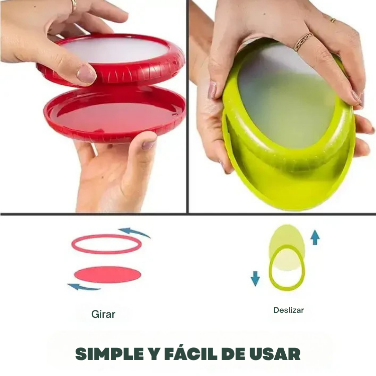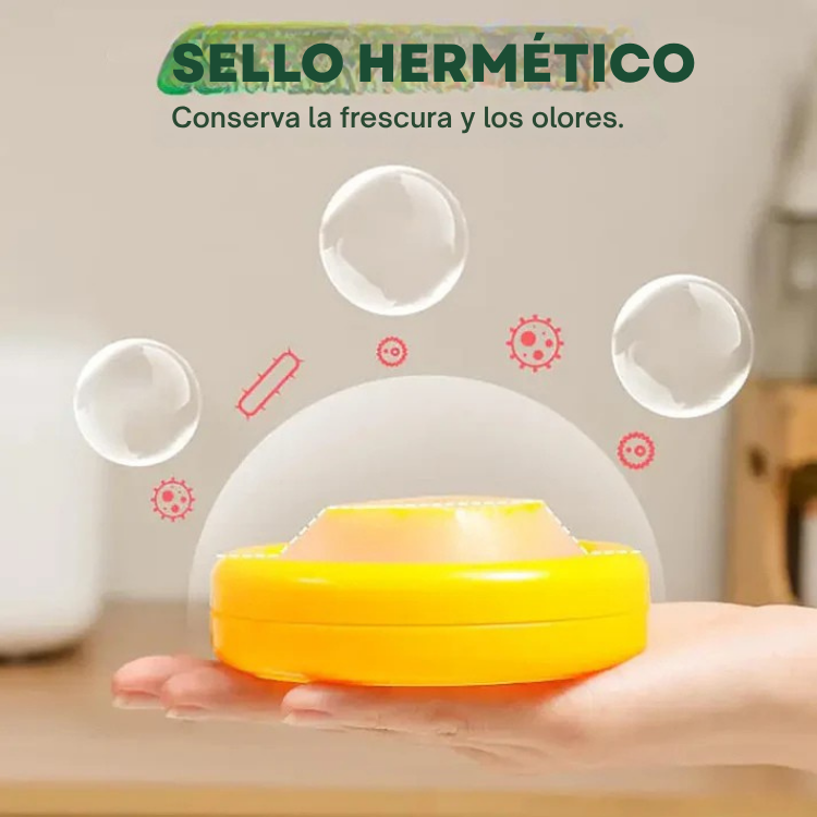 SELLO HERMÉTICO PARA UNA FRESCURA DURADERA : Frilock™ cuenta con un diseño avanzado de silicona que se estira para ajustarse perfectamente a las frutas y verduras cortadas. Este sello hermético conserva la frescura y elimina los olores, manteniendo tus productos frescos por más tiempo y tu refrigerador sin olores.